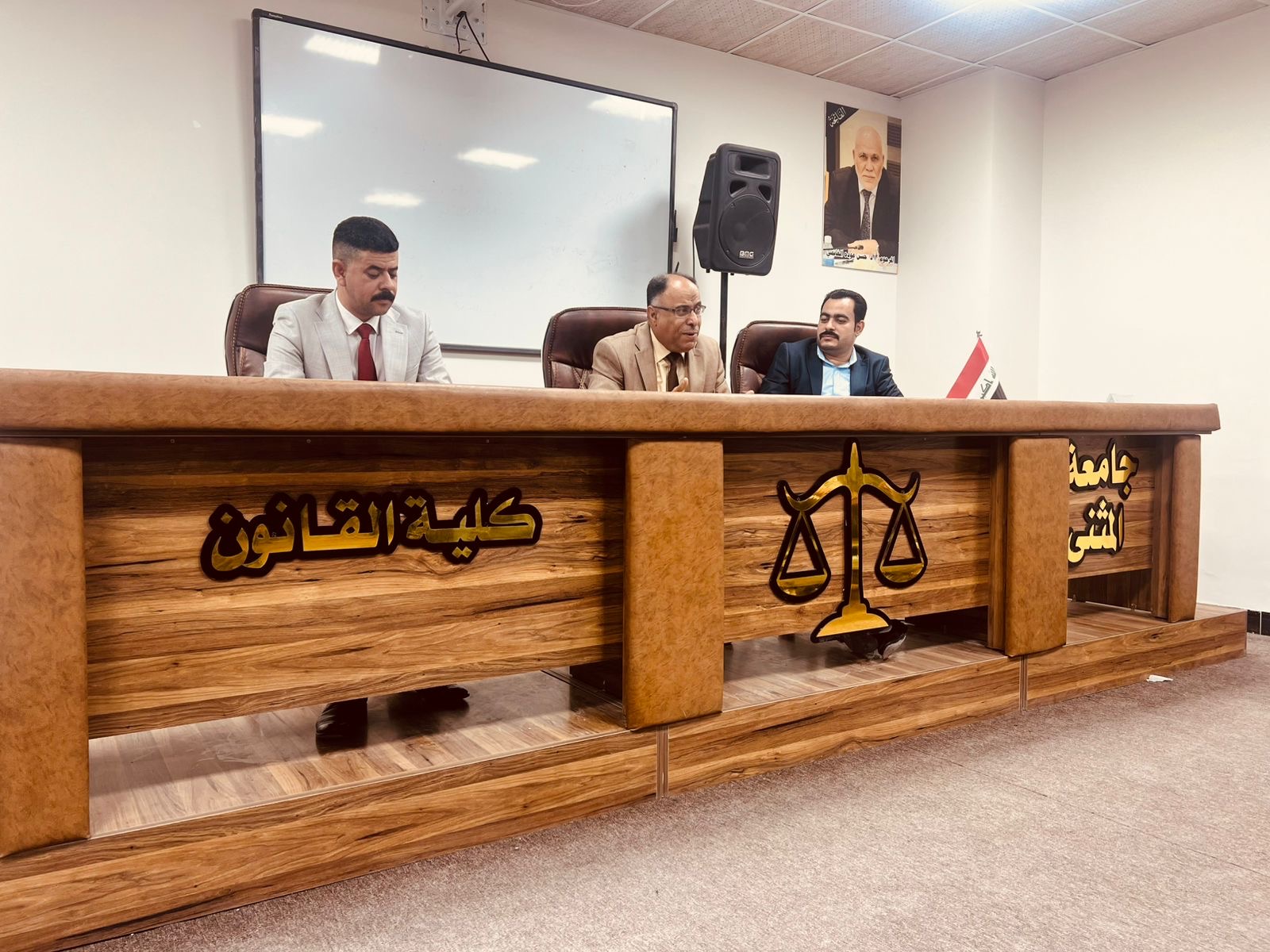 كلية القانون في جامعة المثنى تنظم ندوة علمية حول عمل الكتاب العدول نظّمت وحدة التأهيل والمتابعة والتوظيف في كلية القانون بجامعة المثنى ندوة علمية بعنوان “نظرة عامة لعمل الكاتب العدل وفق قانون رقم (33) لسنة 1998”، وذلك يوم الأحد الموافق 12 تشرين الأول 2025، بمشاركة عدد...