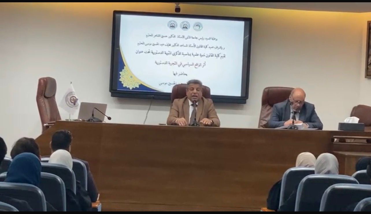 الكادر الإداري في كلية القانون يكرّم عميد الكلية الأستاذ المساعد الدكتور لطيف عبد الحسين موسى نظّم الكادر الإداري في كلية القانون احتفالية تكريمية للسيد عميد الكلية، الأستاذ المساعد الدكتور لطيف عبد الحسين موسى، وذلك تقديرًا لجهودِه المتميّزة في الارتقاء بالأداء الإداري والأكاديمي داخل الكلية خلال الفترة...