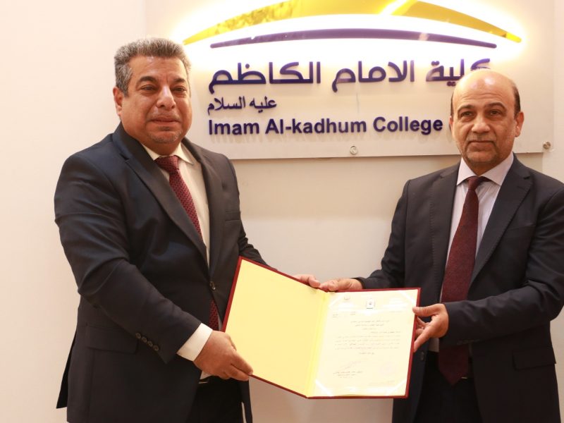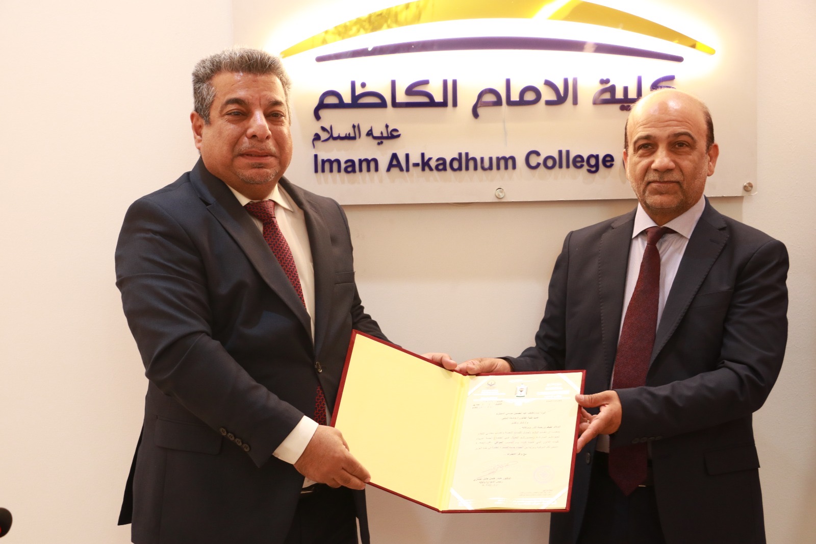 معالي رئيس ديوان الوقف الشيعي يمنح عميد كلية القانون شهادة شكر وتقدير