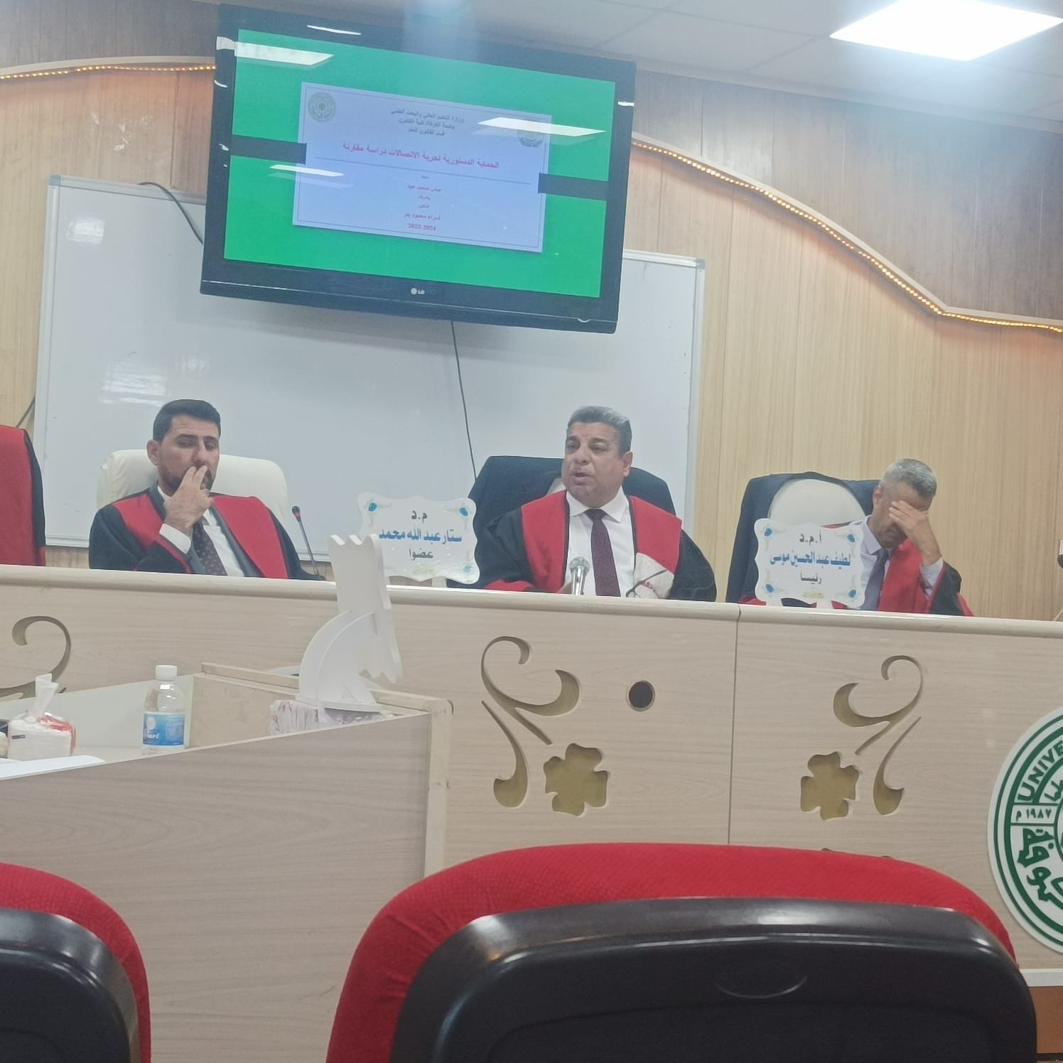 عميد كلية القانون يترأس لجنة مناقشة رسالة ماجستير في جامعة الكوفة شارك السيد عميد الكلية الأستاذ المساعد الدكتور لطيف عبد الحسين موسى المحترم رئيسًا للجنة مناقشة رسالة الماجستير المقدّمة من الطالب عباس صاحب عبيد، في كلية القانون – جامعة الكوفة، والتي جاءت بعنوان: “الحماية الدستورية لحرية الاتصالات...